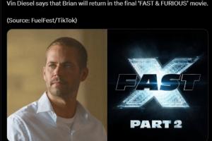 体育资讯10月4日讯 今年夏天,主演范·迪塞尔曾在洛杉矶举行的FuelFest活动中透露,最后一部《速度与激情》电影预计将于2027年4月上映,故事将重返洛杉矶向系列的起点致敬,曾由已故演员保罗·沃克饰演的角色“布莱恩·奥康纳”也将在这部电影中回归。
