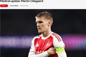 在周六战胜西汉姆联的比赛上半场中,厄德高左膝内侧副韧带受伤。目前,他已退出挪威国家队,挪威即将对阵以色列和新西兰。