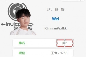 而韩服排位数据小程序显示,iG打野Wei目前已经打上韩服前十。
