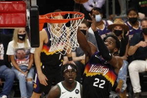 2021年总决赛,艾顿场均14.7分12篮板1.5盖帽,布克场均28.2分3.5篮板4助攻,保罗场均21.8分2.7篮板8.2助攻。