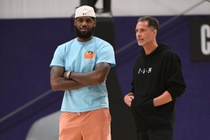 McMenamin昨日在新闻发布会上向湖人篮球运营总裁佩林卡提问了关于詹姆斯处于到期合同的问题。