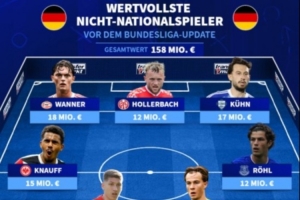 前锋:万纳尔(埃因霍温,1800万欧)、霍勒巴赫(美因茨,1200万欧)、尼古拉斯-库恩(科莫,1700万欧)