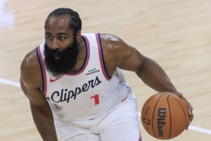 快船球星哈登上半场表现不佳,不仅投篮频频打铁,仅1次罚球还没有命中,在场上失误也比较多。