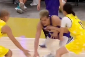 比赛当中,郭艾伦与女篮前国手赵爽拉开单挑,一波蝴蝶穿花运球甚至晃倒赵爽,随后躲开曹芳干扰上篮打进。
