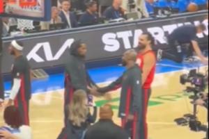 火箭首发阵容登场时,雷霆球迷用欢呼声欢迎了史蒂文-亚当斯,用漫天嘘声迎接了凯文-杜兰特。