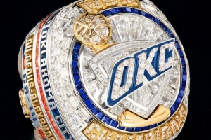 雷霆冠军戒指:14K白金与黄金打造 钻石镶嵌球员号码&内嵌副戒