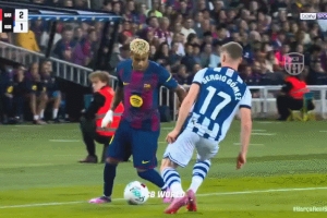 亚马尔本场比赛再次展现高超技术,在边路做出一次牛尾巴穿裆,轻松过掉了防守他的塞尔吉奥-戈麦斯。