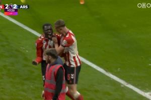 体育资讯11月09日讯 英超第11轮,阿森纳客战桑德兰。补时第94分钟,布罗比侧勾破门,拉亚出击未扑到,桑德兰2-2阿森纳!