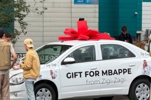 照片中阿拉木图街头停靠着一辆喷有姆巴佩涂鸦的汽车,唐纳德-赫伊森也将这张照片@了姆巴佩,并附上4个“笑哭”表情。