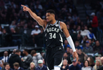 赛季至今,字母场均得到33.4分11.9篮板6.2助攻0.9抢断1.3盖帽。
