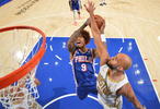 76人队贾斯汀-爱德华兹22分,马克西21分9助攻,格里姆斯18分4助,德拉蒙德14分13篮板,乌布雷12分,最后8.7秒补篮准绝杀,恩比德临场休战;