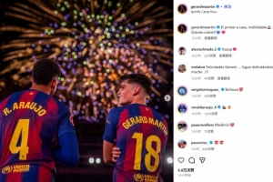 客串中卫表现出色!赫拉德·马丁晒烟花照:难以忘怀的诺坎普首秀